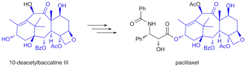 - ↑ (en) K.C. Nicolaou, Z. Yang, J.J. Liu, H. Ueno, P.G. Nantermet, R.K. Guy, C.F. Claiborne, J. Renaud, et al. (1994) – Total synthesis of taxol, Nature, 367 (6464), pp. 630-634