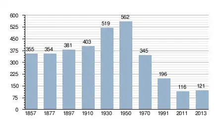 - Bron: INE, 1857-2011: volkstellingen