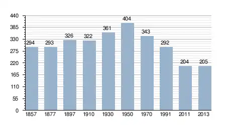 - Bron: INE, 1857-2011: volkstellingen