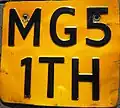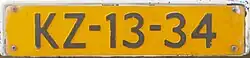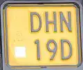 Deze kentekenplaat is geel, met een zwart kader, zwart opschrift en een hologram.