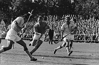 De nationale ploeg speelde zijn eerste officiële interland op 23 januari 1926. Overigens bestond de Hockey Bond al sinds 1898. Dat Nederland pas zo laat zijn eerste interland speelde, komt doordat aanvankelijk volgens eigen regels gespeeld werd. Zo werd niet met de internationaal gebruikelijke witte bal, maar met een zachte oranje gespeeld, de zogenaamde Scheurleer-bal. Ook werd in Nederland met gemengde teams gespeeld en niet met aparte mannen- en vrouwenteams. Pas toen de Olympische Zomerspelen 1928 naderden besliste de KNHB, op initiatief van Rein de Waal, de internationale regels toe te passen, anders had Nederland in eigen land niet eens mee mogen doen.