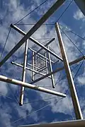 Het kunstwerk is een voorbeeld van tensegrity, waarbij druk- en trekkrachten elkaar in evenwicht houden.