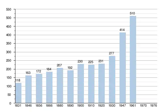- Bronnen:NIS, Opm:1831 tot en met 1961=volkstellingen