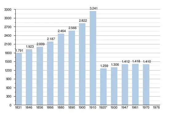 - Bronnen:NIS, Opm:1831 tot en met 1970=volkstellingen