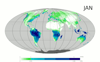 | Neerslag | Totaal | Oceanen | Land |