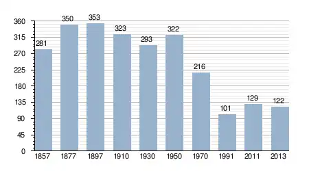 - Bron: INE, 1857-2011: volkstellingen