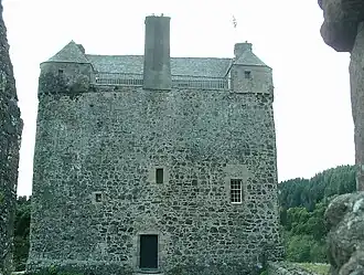 De plattegrond van het kasteel heeft een L-vormige structuur, waarschijnlijk het werk van de Normandische ridder William II de Haya, sheriff van Peebles. Een ongeveer 25 meter lange voorgevel staat schuin op een 15 meter lange en een 25 meter lange zijgevel, waardoor het gebouw asymmetrisch is. De muren zijn ongeveer drie meter dik. Het kasteel heeft twee verdiepingen, waarvan de bovenverdieping in de jaren negentig van de zestiende eeuw middels een houten plafond nogmaals in tweeën verdeeld werd.[1] In de kelder bevinden zich een kerker en een waterput.