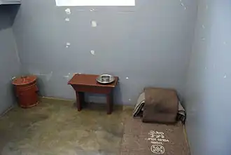 De gevangenen werden gescheiden op basis van huidskleur en zwarte gevangenen ontvingen kleinere rantsoenen dan kleurlingen en Indische personen. De categorie van politieke gevangenen, waartoe Nelson Mandela behoorde, werd afgescheiden en had minder rechten. De gevangenen moesten zich met koud zeewater wassen en Mandela sliep in een cel van 2,4 bij 2,1 meter op een slaapmat.[5]