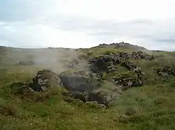 IJsland ligt op de Midden-Atlantische rug, een onderwaterbreukzone met bergketens en troggen in de Atlantische Oceaan die een noord-zuidoriëntatie heeft. Een reeks van vulkanische breukzones deelt IJsland min of meer in tweeën. Deze breukzones komen redelijk overeen met de scheidslijn tussen de Amerikaanse en Europese tektonische platen, die met een gemiddelde snelheid van ca. 2 cm per jaar uiteendrijven.