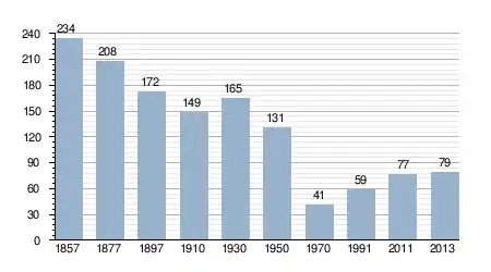 - Bron: INE, 1857-2011: volkstellingen
