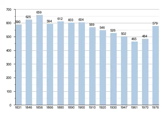 - Bronnen:NIS, Opm:1831 tot en met 1970=volkstellingen
