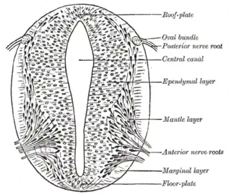 Fig.4 Dwarsdoorsnede van de neurale buis met de vloerplaat en dakplaat