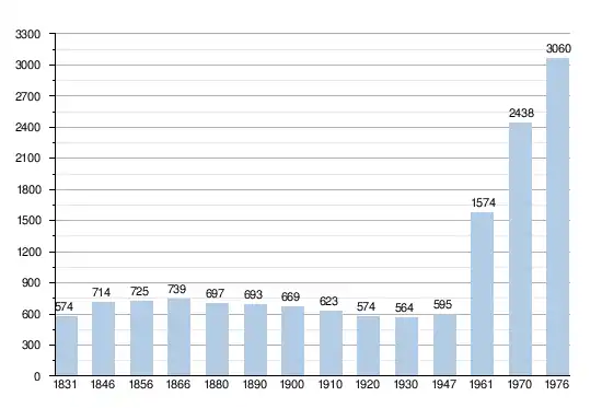 - Bronnen:NIS, Opm:1831 tot en met 1970=volkstellingen, 1976= inwoneraantal op 31 december