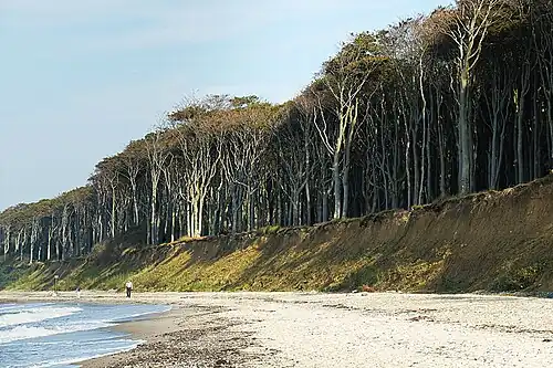 De plaats ligt aan de Oostzee waar zich ook direct aan zee het Gespensterwald (spookbos) bevindt.