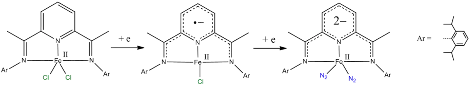 - pyridine-2,6-diimine liganden ( Zie figuur 2) kunnen zowel één- als twee-elektron-reducties ondergaan.[10][11][12]