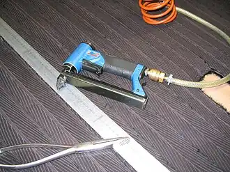 Bij het stofferen van meubels is het een handig en veel tijd besparend stuk gereedschap. Langzamerhand heeft het apparaat een veel uitgebreidere toepassing: hechten van isolatiemateriaal, (dunne) plafondplaten nieten, folie bevestigen, vloeren egaliseren met boardplaten enzovoort.