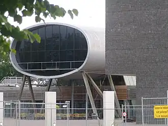 Het oorspronkelijke gebouw was als het ware een dwarsdoorsnede van een dijk, zoals deze rond de polders in Nederland ligt. Hier haaks bovenop lag een langwerpige ovaal, die bekendstond als 'de Kijker'.[3] Het originele gebouw was een ontwerp van architectenbureau Benthem Crouwel.[3] Bij uitbreiding werd de dijkvorm verlaten, maar de Kijker is nog steeds een blikvanger. De uitbreiding werd vormgegeven door Atelier PRO.[3]