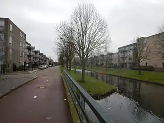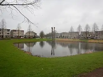 | Zicht op woningen van Nieuweland vanaf de Sweelincklaan | |