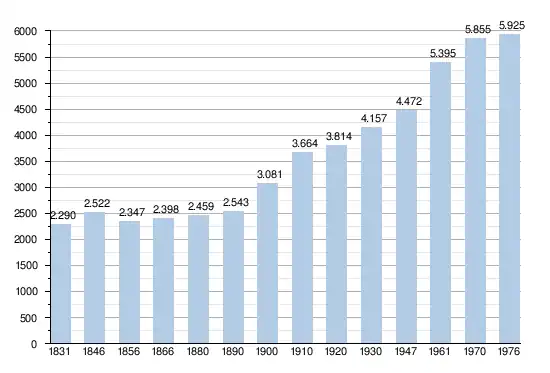 - Bronnen:NIS, Opm:1831 tot en met 1970=volkstellingen; 1976 = inwoneraantal op 31 december
