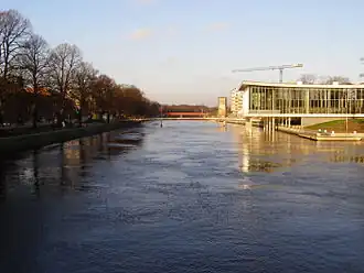 De rivier begint nabij Taberg (op 300 meter hoogte), stroomt dan door Småland en Halland, en stroomt dan in het Kattegat nabij Halmstad. Deze stad is rond de rivier gebouwd. De rivier is ongeveer 200 kilometer lang.