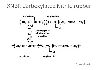 XNBR (Carboxylated Nitrile Butadiene Rubber of gecarboxyleerde Nitrile butadieen rubber) is een verbeterde versie van nitrilerubber met carboxylgroepen op de polymeerketens. Deze zullen extra crosslinks leveren tussen de polymeerketens. In deze uitvoering zijn er dus naast de zwavelbruggen van het vulkanisatieproces ook carboxylgroepen R-COO- op de dubbele binding van het butadieendeel in de keten te vinden. Deze carboxylgroepen zullen met zink Zn++ "pseudo"-crosslinks onder de vorm van ionaire bindingen maken welke verbeterde fysische eigenschappen geven in vergelijking met niet-gecarboxyleerde nitrilrubber. Deze ionische zinkbruggen worden gevormd parallel aan de zwavelbruggen van het vulkanisatieproces. De carboxylgroepen die nodig zijn voor deze extra links zijn proportioneel over de keten verdeeld in een relatieve hoeveelheid van 10% of minder. Hierdoor wordt het rubber harder, sterker en beter bestand tegen wrijving dan standaard NBR. Het wordt wel minder flexibel bij lage temperatuur, en bij hoge temperaturen verliezen de ionaire bindingen hun sterkte.
