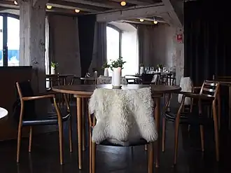Het restaurant heeft een houten vloer, houten balken, houten tafels en stoelen, waarbij een huid over de rug hangt. Er is plek voor 85 personen per avond. Reserveringen moeten weken tevoren worden gemaakt. Er zijn ongeveer 30 koks die 80 uren per week werken, inclusief de zoektochten buiten naar verse mossen, wieren en kruiden.