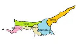 De Turkse Republiek Noord-Cyprus is een staat in het noorden van het eiland Cyprus. Zij is bestuurlijk onderverdeeld in vijf districten: Güzelyurt, Girne, Lefkoşa, Gazimağusa, İskele. Deze districten zijn weer onderverdeeld in veertien subdistricten.