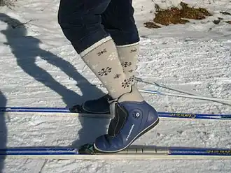 Hierin vindt men dan ook het onderscheid met het alpineskiën, waarbij de gehele voet vast aan de ski zit. Deze vorm van skiën is rond het einde van de 19e eeuw ontstaan uit de Noordse wijze. De hellingen in de Alpen zijn echter steiler en langer dan die in Scandinavië, waar een vaste voet toch voordeliger bleek.