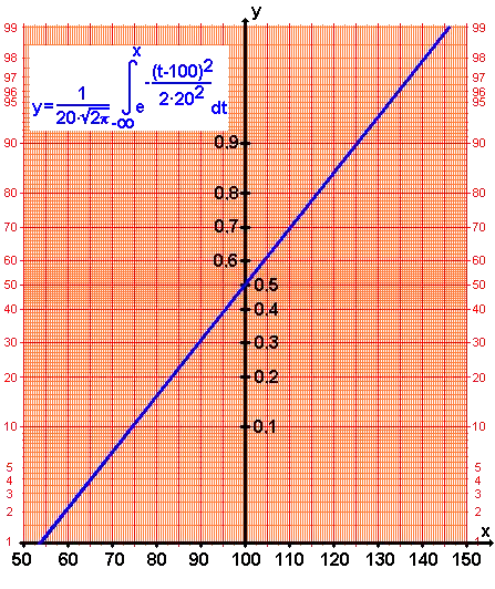 Als voorbeeld zijn voor de normale verdeling met μ = 100 en σ = 20 de kansen