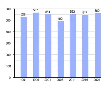 | Bron: Statistics Canada (1951–1986[3], 1991–1996[4], 2001–2006[5], 2011–2016[6], 2021[7]) |
