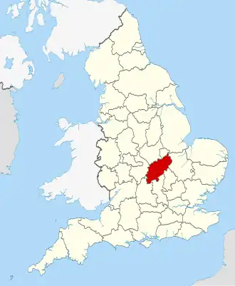 Northamptonshire grenst aan Warwickshire, Leicestershire, Rutland, Cambridgeshire (inclusief Peterborough), Bedfordshire, Buckinghamshire (inclusief de Borough Milton Keynes).