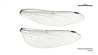 | Vleugel van Notoaeschna geminata (vrouwtje) | |||||||||||||||