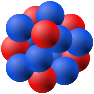 Nucleonen zijn geen elementaire deeltjes, omdat zij een inwendige structuur hebben. Ieder nucleon bestaat uit drie quarks, die interactie met elkaar hebben via de gluonen.