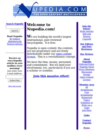 - (en) Nupedia op 7 april 2000 in het Internet Archive