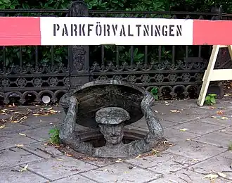 Ook staat een bronzen sculptuur van K G Bejermark op het plaveisel richting park. Deze sculptuur heeft als titel Humor en werd in 1970 onthuld. Het verbeeldt een man die een putdeksel uit de straat optilt. Deze man is vormgegeven naar acteur en komiek Hans Alfredsson. De zaagbokken die om het beeld heen staan zijn toegevoegd door de beheerders van het park (de Parkförvaltningen).