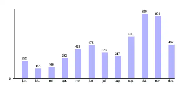 | Gemiddeld debiet per maand (in m³/s) tussen 1951 en 1977 |