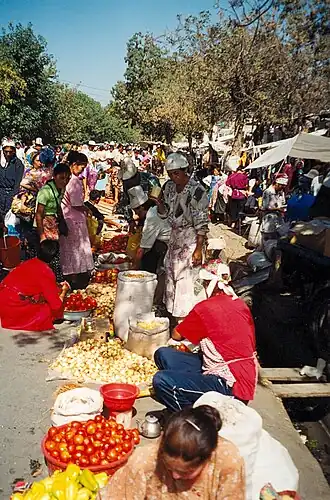 De stad is vermaard vanwege haar markt langs de rivier, een van de grootste in Centraal-Azië.