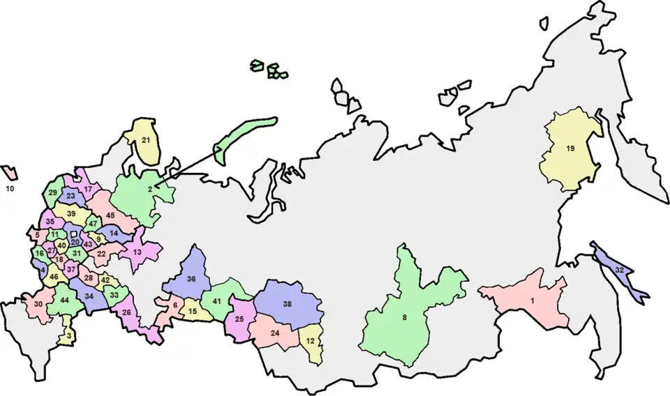 Sinds 2000 is hierboven een overkoepelende bestuurlijke laag ingesteld, in de vorm van federale districten.
