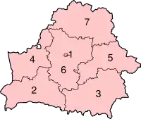 Wit-Rusland bestaat op het hoogste niveau van de bestuurlijke indeling uit zes oblasten en één stad met bijzondere status, namelijk de hoofdstad Minsk.