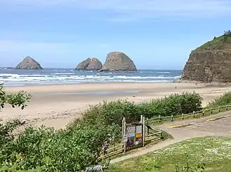 - Het Three Arch Rocks National Wildlife Refuge behoort tot de kleinste wildernisgebieden in de VS: het is slechts 6,07 hectare groot en omvat zes rotsachtige eilandjes op ongeveer een kilometer voor de kust van Oceanside. Het reservaat beschermt wel een van de grootste broedlocaties voor zeevogels in Oregon.