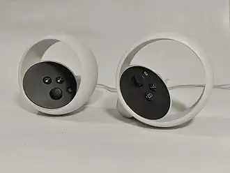 De meegeleverde controllers bij de Quest 2 zijn Oculus Touch-controllers van de derde generatie. Het ontwerp van de nieuwe controllers is beïnvloed door de originele Oculus Rift-controllers. Hun batterijduur is echter verviervoudigd ten opzichte van de controllers die bij de eerste generatie Quest werden geleverd. Met de vier camera's op de voorkant van de headset is er ook hand tracking mogelijk. Zo kan een gebruiker in sommige games zijn handen zien.