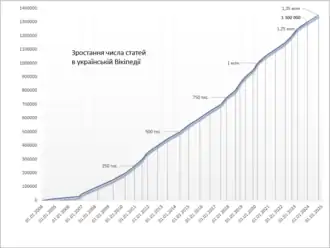 - Actueel aantal artikelen op de Oekraïenstalige Wikipedia