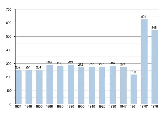- Bronnen:NIS, Opm:1831 tot en met 1970=volkstellingen