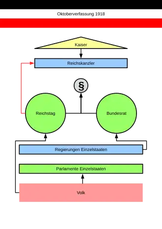 Al sinds het voorjaar van 1917 was er een debat over een verdere hervorming van het semi-constitutionele regeringsstelsel aan de gang. Voor dit debat op gang kwam had de aristocratie en de keizer nog heel veel zeggenschap over het beleid en het bestuur van Duitsland. De volksvertegenwoordiging in de Rijksdag had betrekkelijk weinig invloed en de heersende aristocratische elite blokkeerde steeds voorgestelde wijzigingen om het keizerrijk meer te democratiseren die de volksvertegenwoordiging geregeld indiende, uit angst hun privileges te verliezen. De Amerikaanse regering, een van de belangrijkste tegenstanders in de oorlog, vond deze hervormingen echter nodig om vrede te sluiten. Deze eis was daardoor doorslaggevend. Omdat iets meer dan twee weken later het keizerrijk eindigde waren de hervormingen van weinig praktisch belang. Na de novemberrevolutie, waarbij de keizer werd afgezet en de monarchie afgeschaft, (vanaf 9 november) kreeg Duitsland de grondwet van de Weimarrepubliek (11 augustus 1919) en werd Duitsland een volwaardige, maar onstabiele democratie die uiteindelijk door Adolf Hitler ten val zou worden gebracht.