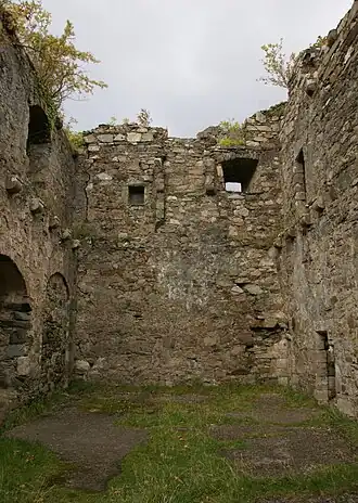 In de zuidwestelijke vleugel bevonden zich gewelfde kelders, waarvan de meest zuidelijke kelder diende als keuken.[3] Op de verdieping erboven was de hal, die kon worden bereikt via een trap aan de zuidzijde van de vleugel. In de noordoostelijke vleugel bevonden zich de privévertrekken van de bewoners van het kasteel.[3]