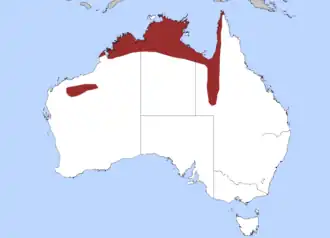 | Verspreidingsgebied binnen Australië in het rood. | |||||||||||||||||