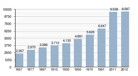 - Bron: INE; 1857-2011: volkstellingen