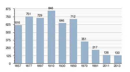 - Bron: INE, 1857-2011: volkstellingen
