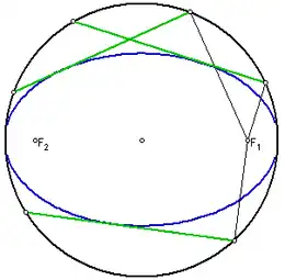 Neem een cirkel en een vast punt binnen die cirkel. We laten een punt over de cirkel lopen. De lijnen door loodrecht op raken aan een ellips met als een van de brandpunten en de middellijn van de cirkel door als lange as. De ellips is dus de omhullende.