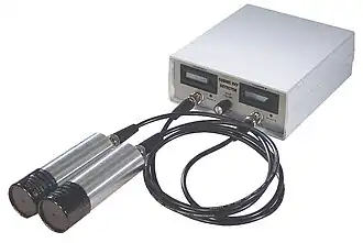 - Zender-ontvanger - zendt en ontvangt beurtelings ultrasoon geluid en zet dit om in een (zeer zwakke) elektrische wisselspanning